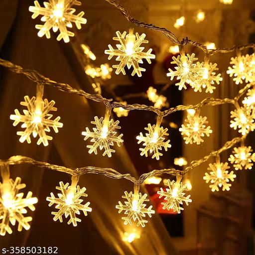 Light up your celebrations with these Snowflake LED String Lights featuring 14 warm white LED bulbs across a 4-meter string. Designed with a charming snowflake pattern, these lights add elegance, warmth, and a festive touch to any space. Perfect for Diwali, Christmas, weddings, birthdays, and everyday home décor.