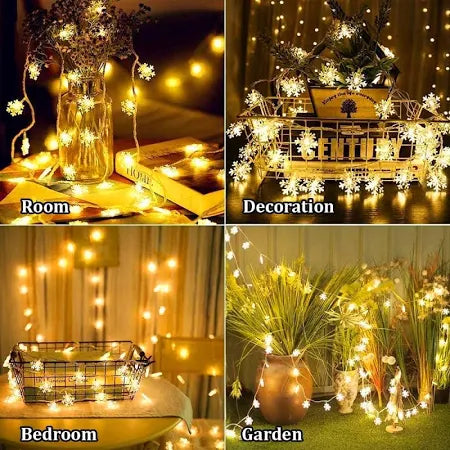 Snowflake LED String Lights (PACK OF 2) – 14 Warm White LEDs, 4M Fairy Lights for Diwali, Christmas, Wedding & Home Decoration